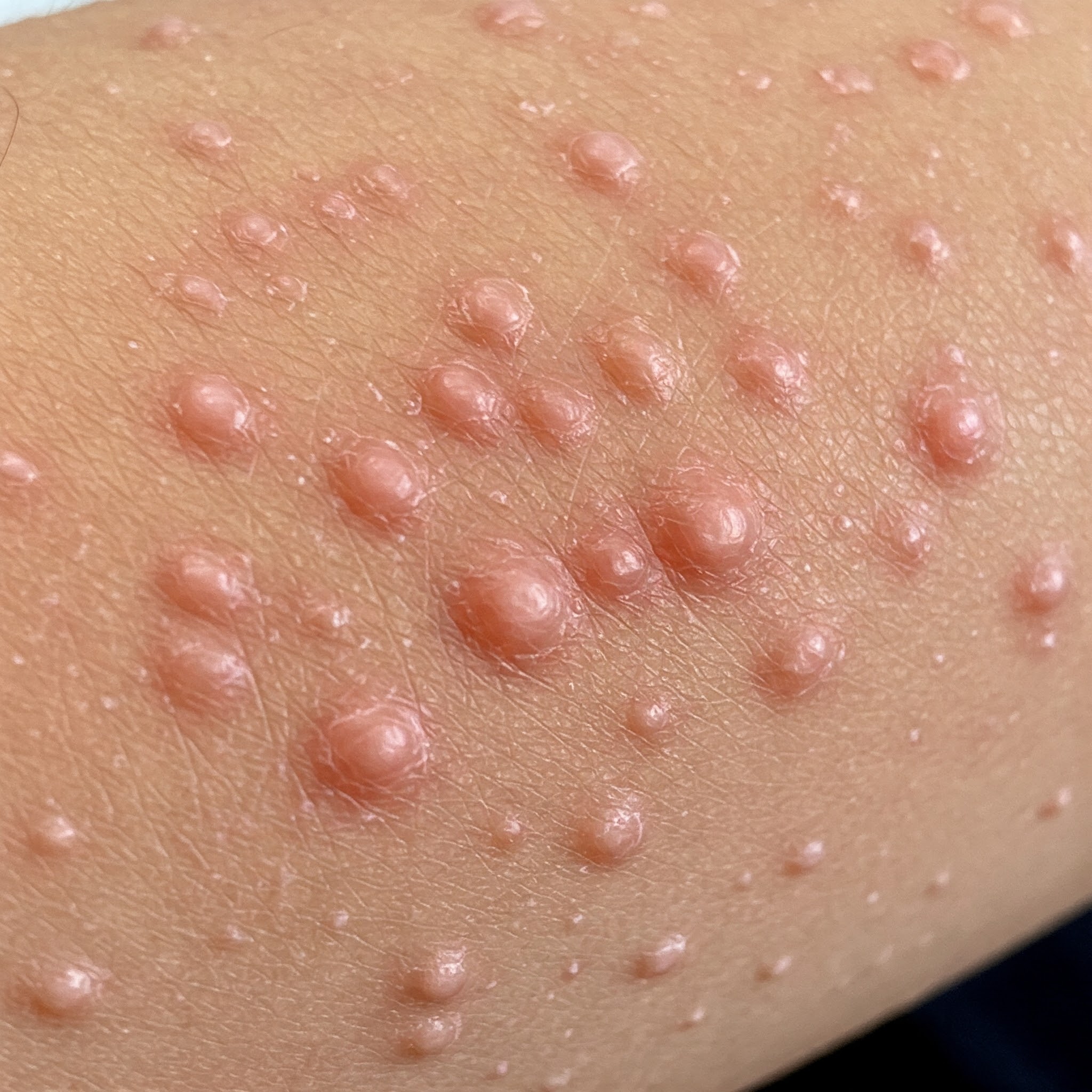 Kabarcıklar ve Sulu Lezyonlar: Bazı egzama türlerinde, özellikle akut dönemlerde, içi sıvı dolu küçük kabarcıklar (vezikül) veya sulu lezyonlar görülebilir. Bu kabarcıklar zamanla patlayabilir ve kabuklanabilir.