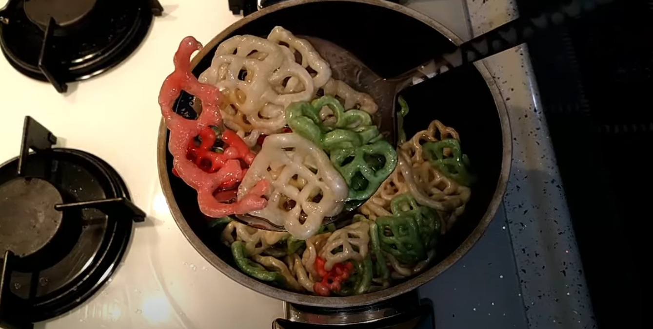 Bu cipslerin içinde, mısır unu, patates, tuz ve gıda boyası bulunmaktadır. Bu cipsleri yapabilmek için ise ilk önce yapmanız gereken bazı şeyler bulunuyor. İlk olarak yapmanız gereken şey bir tencereye yağ doldurmak ve bu yağı kızana kadar ısıtmak.